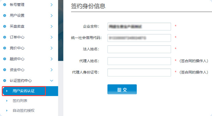 01填写企业信息和代理人信息并提交