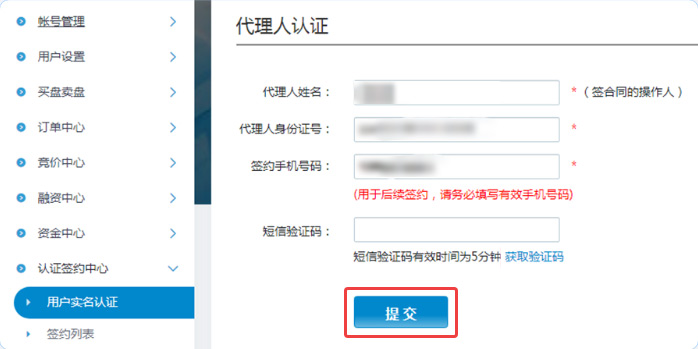 02代理人身份认证,填写后提交